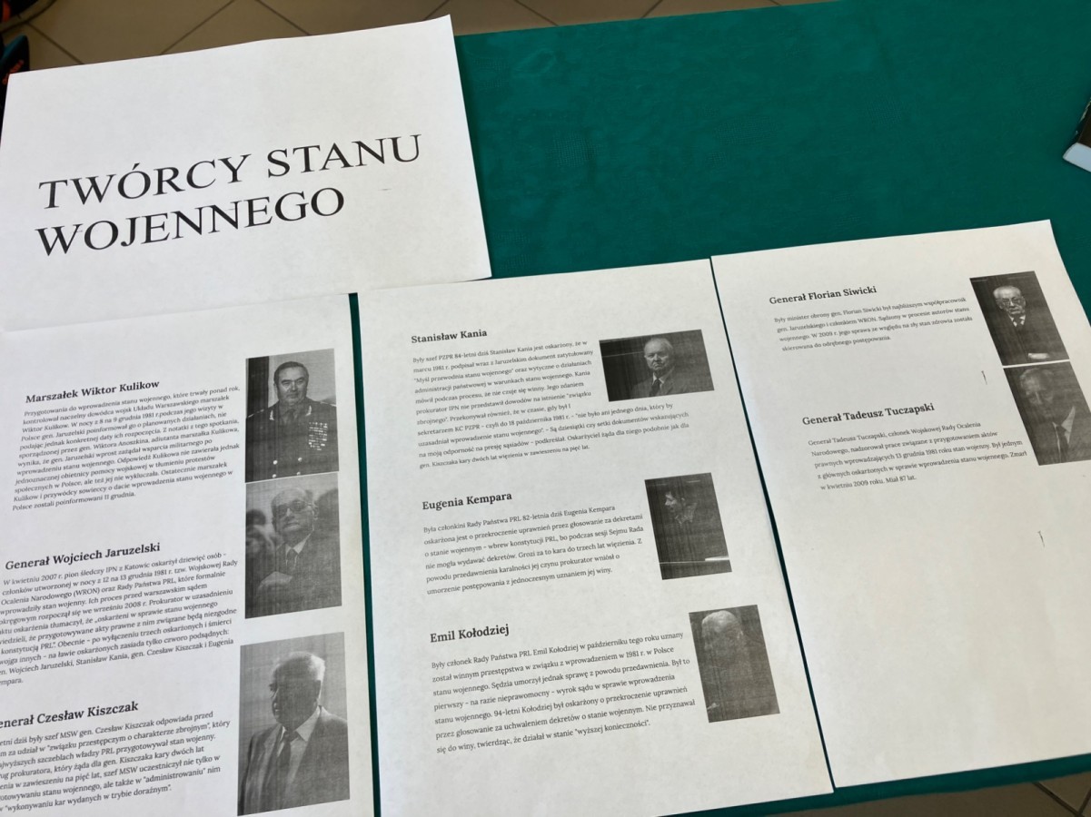 W dniu 16.12.2025 r. miała miejsce wystawa, zorganizowana przez uczniów klas pierwszych, poświęcona tragicznym wydarzeniom grudnia 1981 roku. W ramach ekspozycji uczniowie mieli możliwość wysłuchać archiwalnych nagrań, obejrzeć autentyczne materiały, zdjęcia i pamiątki osób represjonowanych oraz internowanych w więzieniach.