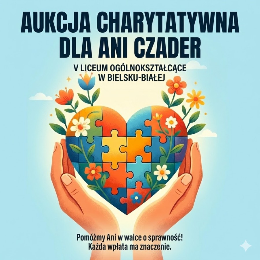 Szkolne Koło Wolontariatu przypomina: już 19 marca 2026 roku odbędzie się aukcja charytatywna, z której całkowity dochód zostanie przeznaczony na wsparcie Ani Czader.