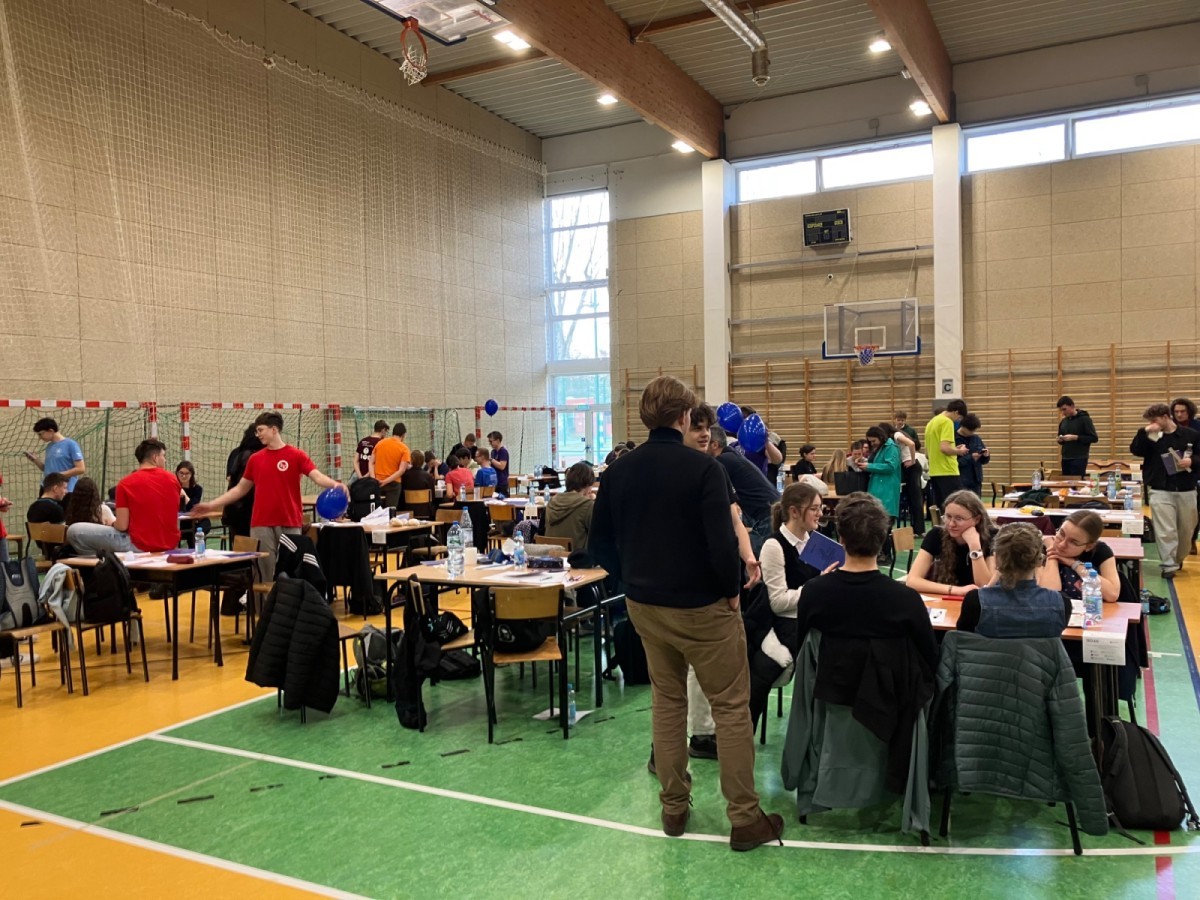Dzisiaj (13.03.2026) w Krakowie odbył się międzynarodowy turniej matematyczny Naboj, w którym wzięli udział uczniowie V Liceum Ogólnokształcącego. Konkurs ten jest jednym z najbardziej znanych drużynowych zawodów matematycznych dla uczniów szkół średnich. Uczestnicy z wielu krajów jednocześnie rozwiązują zestawy wymagających zadań, które sprawdzają nie tylko wiedzę matematyczną, ale również umiejętność logicznego myślenia, kreatywność oraz skuteczną współpracę w zespole.