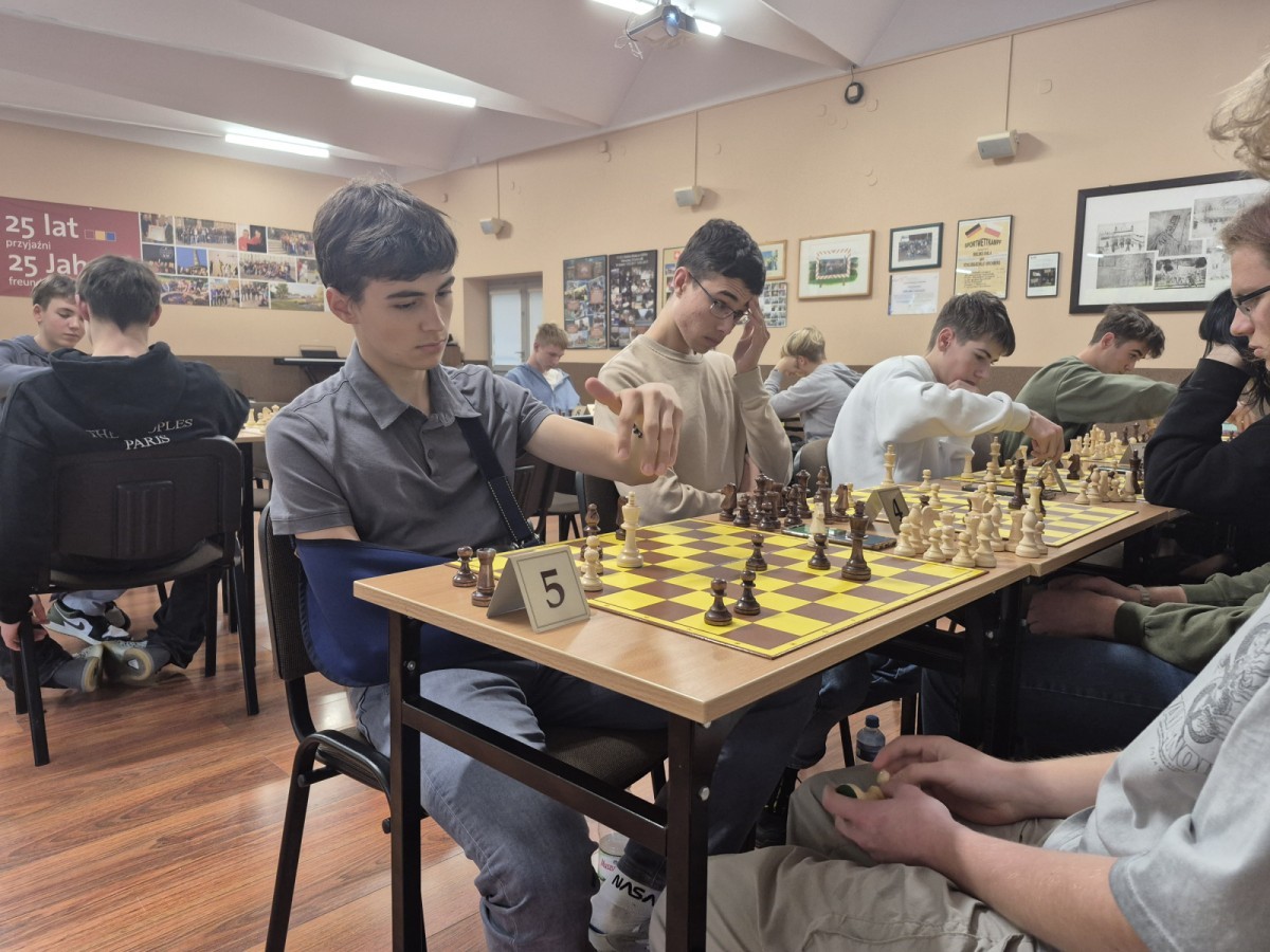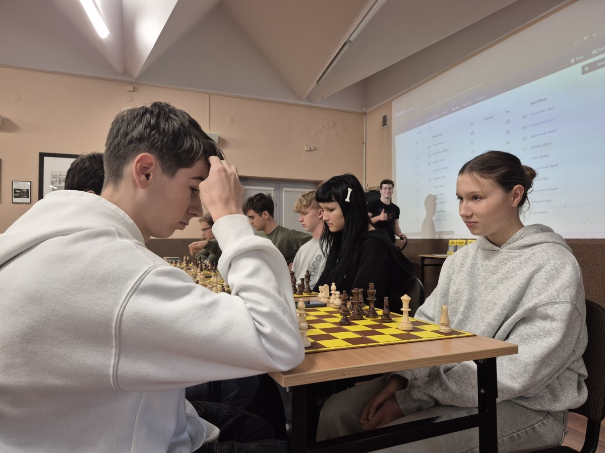 9 października 2025 r. odbył się otwarty Turniej Szachowy dla uczniów V LO. Rozgrywki trwały ponad 4 godziny i po 9 rundach zaciętej rywalizacji w systemie szwajcarskim poznaliśmy najlepszą trójkę uczestników turnieju. Pierwsze miejsce zajął Michał Pasierbek z klasy 4f, drugie miejsce Mikołaj Kasprowicz z klasy 1a, trzecie miejsce Jakub Matuszek klasa 1a. W kategorii dziewcząt najlepszy wynik osiągnęła Karina Dziedzic z klasy 3d.
