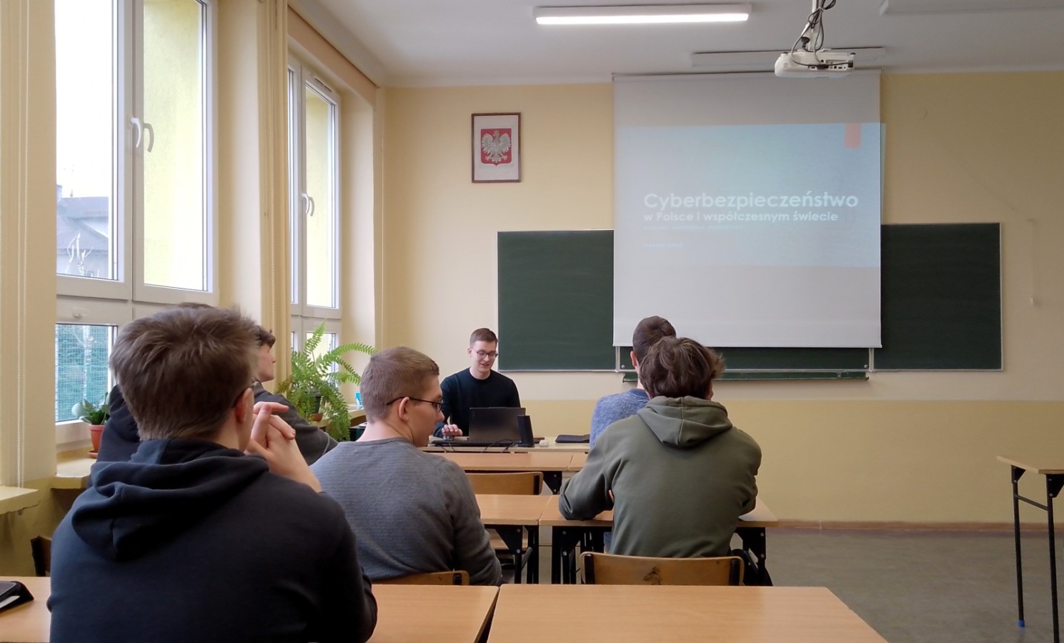 W środę 28.01.2026r. odbyły się warsztaty o cyberbezpieczeństwie “Cyberbezpieczeństwo w Polsce i współczesnym świecie”, które przygotował i przeprowadził absolwent naszego liceum Makary Grad. W warsztatach uczestniczyli uczniowie, którzy awansowali do finału centralnego Olimpiady Wiedzy o Bezpieczeństwie i Obronności.