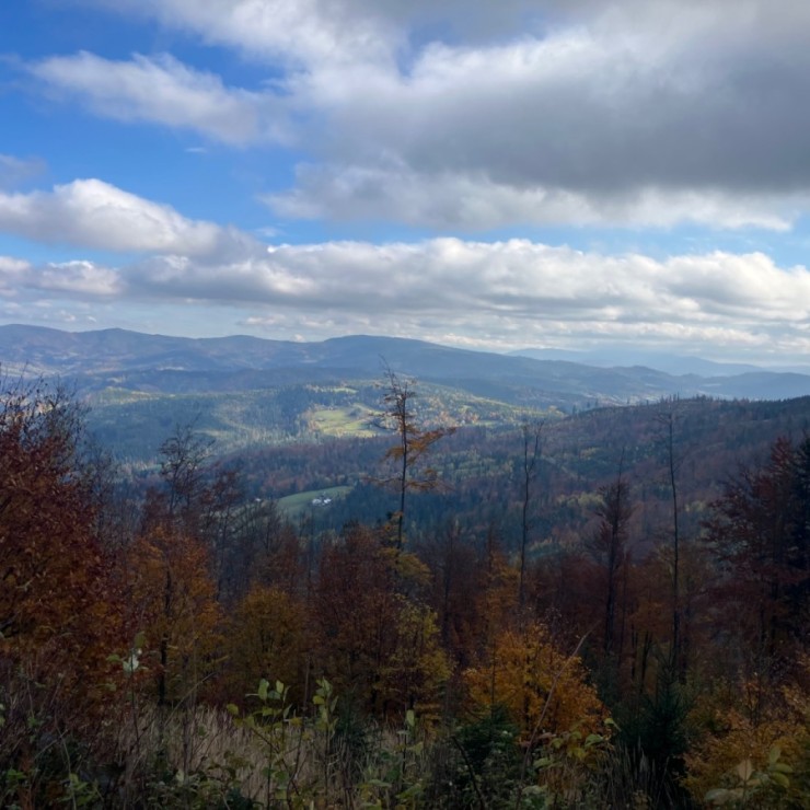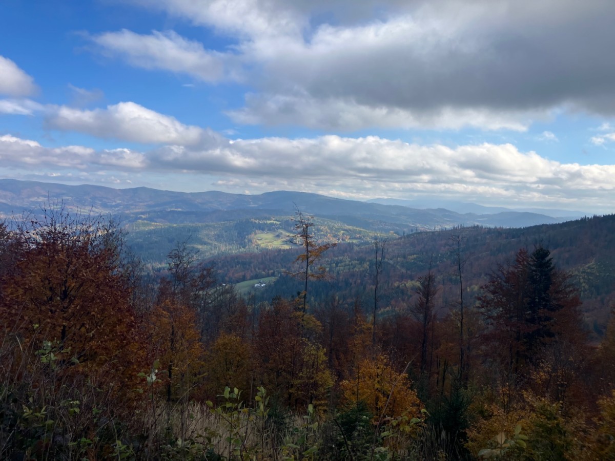 Jesienna aura sprzyjała podziwianiu rozległych panoram. Z tras widokowych uczestnicy mieli niepowtarzalną okazję dostrzec z oddali majestatyczną Babią Górę oraz Pilsko.